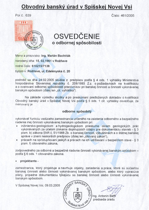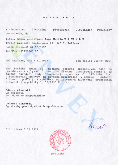 • spracovanie vybraných dokumentácií pre nakladanie s odpadmi