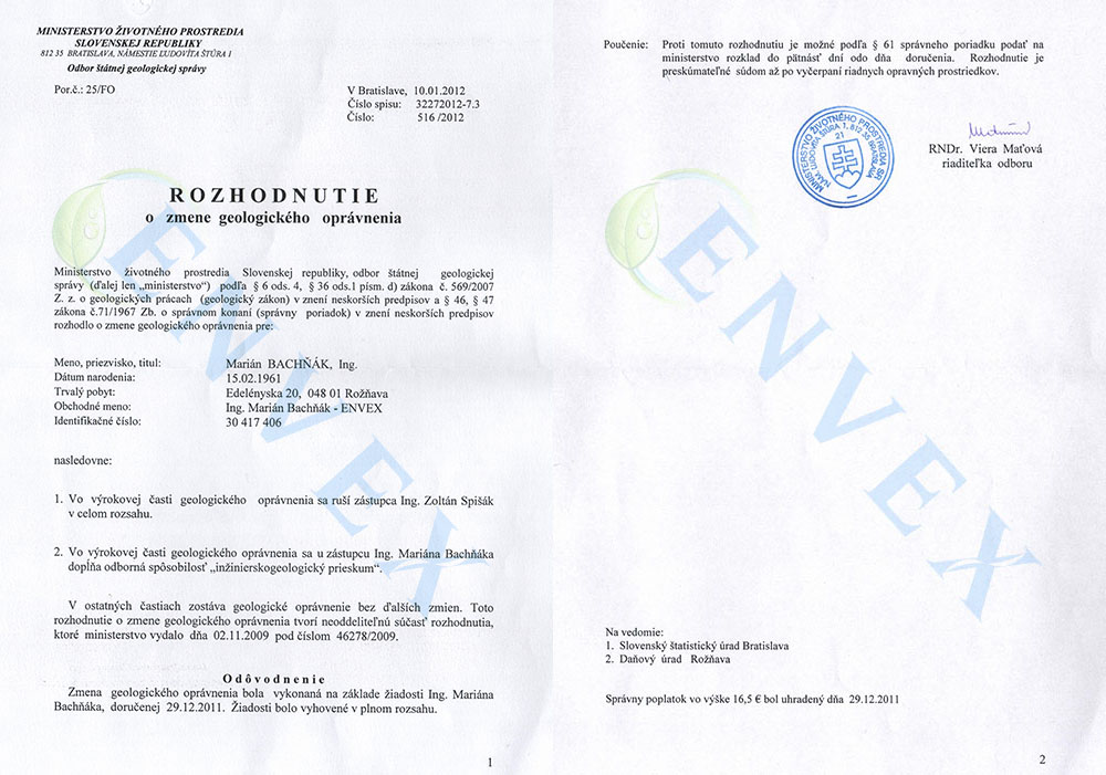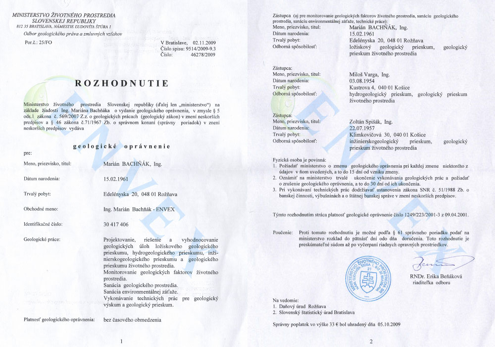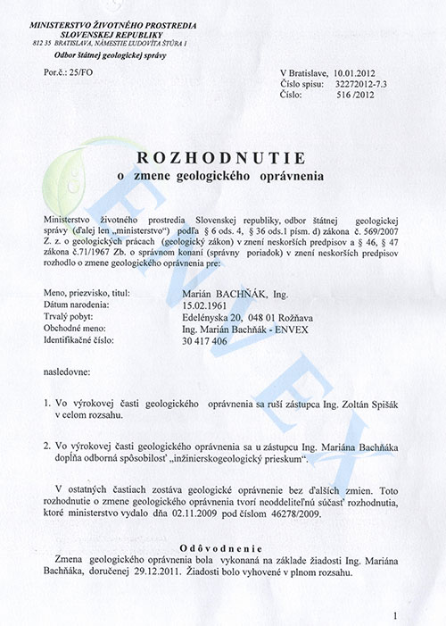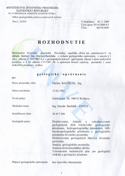 Spoločnosť ENVEX, s.r.o. vznikla rozšírením pôvodnej spoločnosti Ing. Marián Bachňák – ENVEX, ktorá ako podnikateľský subjekt pôsobí na trhu už od roku 1997. Vzniku spoločnosti predchádzajú aj niekoľkoročné skúsenosti pôsobenia v Geologickom prieskume š.p. Spišská Nová Ves, v ktorom som pôsobil od roku 1984.